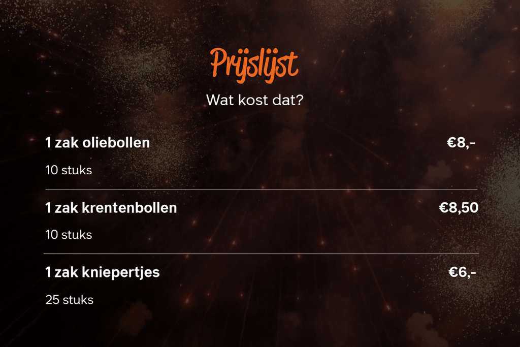 Aantal zakken oliebollen (€8,00 - 10 stuks/zak) selecteer012345678910